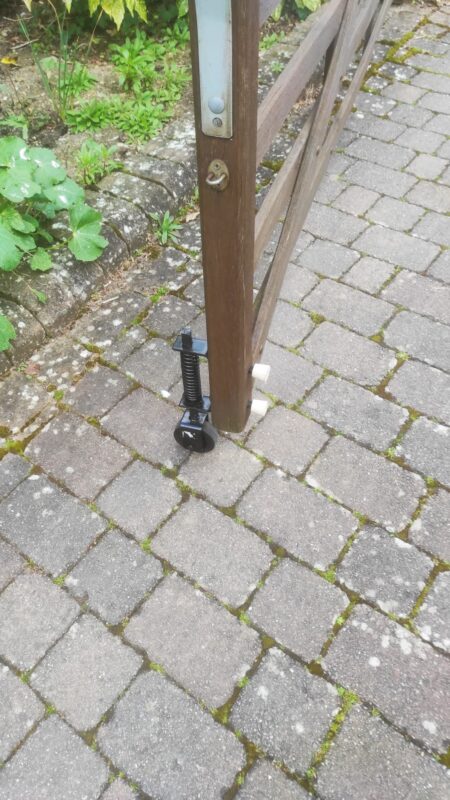 Just fixed it to my heavy drive gate and the gate now closes smoothly! Good quality and strong! I will be removing the white rubber bits when I remove the curb stone which allow me to push the gate completely off the driveway.
